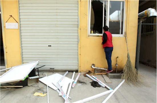 当时女店主连同大门,被冲击波直接顶出了门外,撞到了停放在外面的车上,随后被弹落在地上。女店主的脸上被火灼伤,手上也沾了血。停在平房门口的一辆长安马自达汽车,车的一侧有两处明显变形,凹进了车体内。