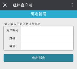 请输入用户编码——姓名——电话,三项必须填全填正确,点击绑定。